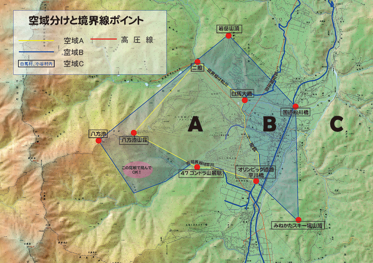 The following rules are established to ensure the safe flight of members and visitors in the Hakuba Happo Flight Area (hereafter referred to as “the Area”) under the management of Sky Blue Happo-One Paragliding School.